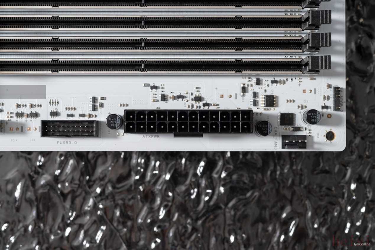 CPU的供電接口為雙8Pin,主板的右側(cè)依舊是24Pin供電接口,是硬件能夠穩(wěn)定運轉(zhuǎn)的重要保障之一。