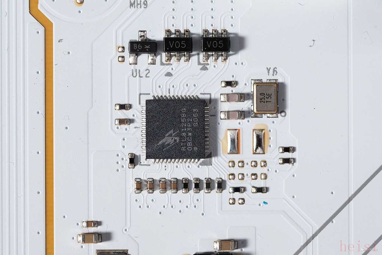 有線網(wǎng)卡芯片則位于聲道音頻接口下方,同樣是Realtek 瑞昱出品,型號為RTL8125BG,帶寬是此前千兆網(wǎng)卡的2.5倍。后綴上的這個BG表示該網(wǎng)卡為加強改進版,主要體現(xiàn)在延遲方面,能夠進一步降低網(wǎng)絡(luò)延遲。