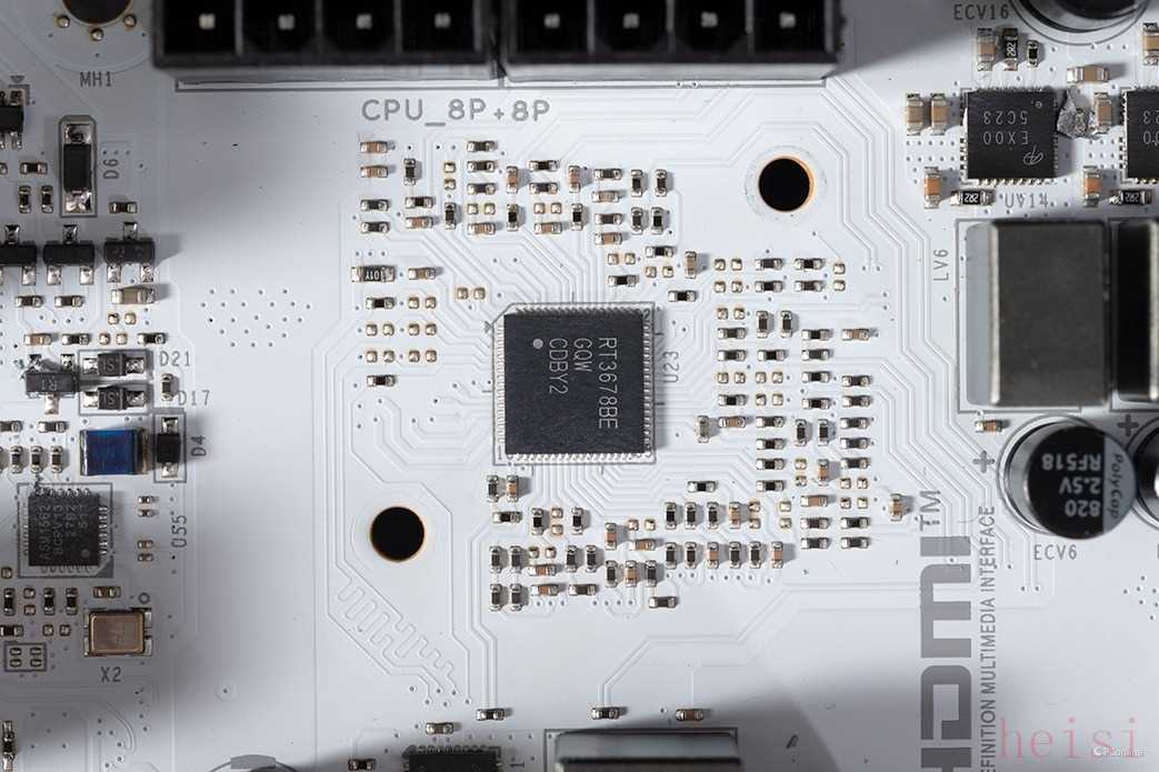 至于CPU與核顯的PWM芯片則是RT3678E,這是一款8 + 2相的控制器,來自立锜科技。