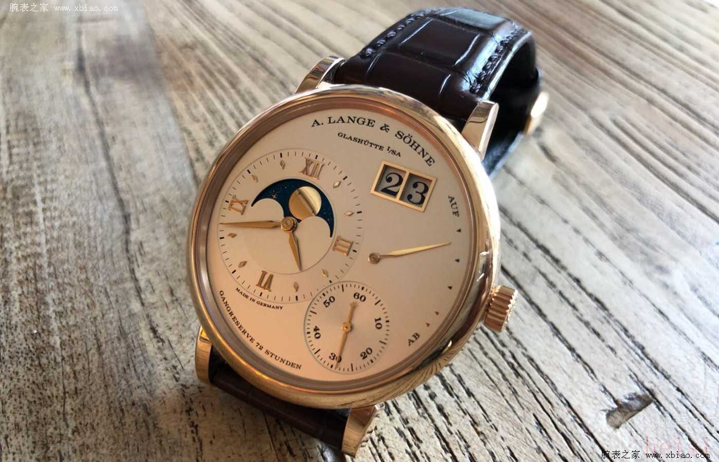 德系制表的另一個代表品牌便是格拉蘇蒂原創(chuàng)。Pano偏心系列以其獨特的不對稱表盤而著稱,同樣展現(xiàn)了德表特有的表盤風格及大日歷元素?,F(xiàn)售款偏心系列月相腕表于2015年推出,相較舊款將表徑由39調(diào)整至40毫米,并且將表圈進一步收窄,觀感更顯簡潔干練。