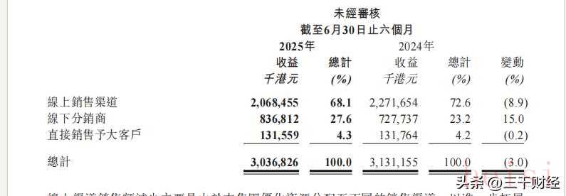 根據(jù)2025年度半年報,線上的銷售額已經(jīng)接近70%。
