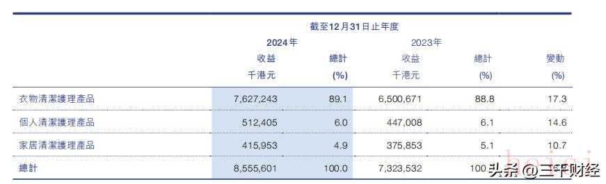 業(yè)務(wù)分為三類,最大的比例還是來自洗衣液,占比接近90%。