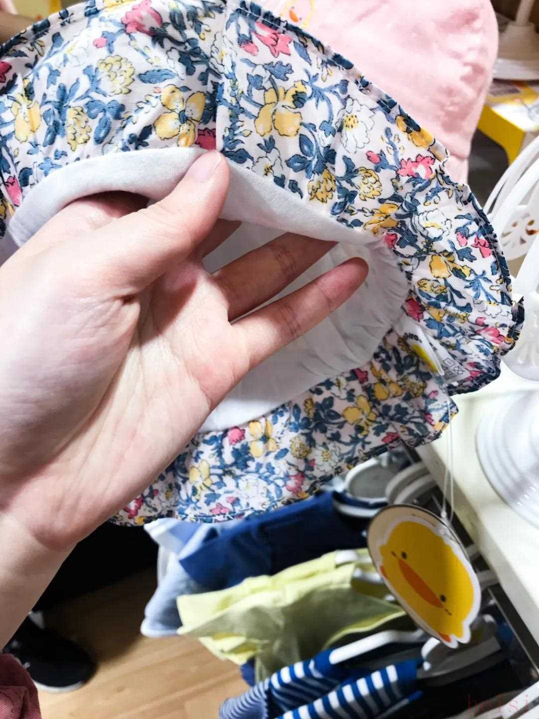 雖然沒(méi)有UPF值但帽檐很寬,可以遮住孩子的臉。因?yàn)槊弊舆€有層內(nèi)襯布,因此厚薄度感受下來(lái)還是不太適合盛夏戶外戴,日常戴是沒(méi)問(wèn)題的。