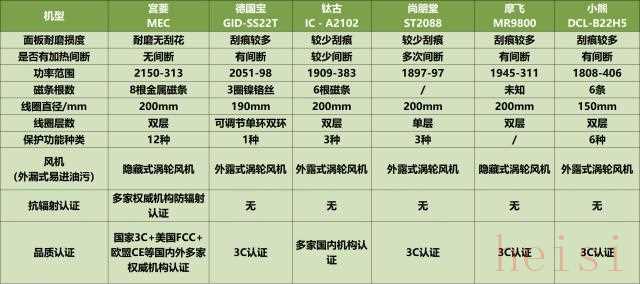 電磁爐測評維度②:線圈配置測評目的:電磁爐的線圈越大,鍋底受熱就會更均勻,不會把菜燒糊,還能延長鍋的使用壽命。線圈材質(zhì)選銅的,導(dǎo)熱快還耐用。鋁線圈容易壞,用一段時間就不行了。多層線圈加熱更穩(wěn)定,用起來體驗更好。測評分析:市面上大部分電磁爐都是雙層線圈,大家用著也比較放心。不過尚朋堂和德國寶這兩款是電陶爐,沒有線圈盤和磁條,所以加熱速度慢。剩下的機型里,鈦古、摩飛和宮菱都用的是200mm的銅制雙層線圈,導(dǎo)熱快又耐用。但宮菱還多了8根金屬導(dǎo)磁條,同時,不僅使用了螺旋式9段加熱,還配置了均勻火技術(shù),火力穩(wěn)定,不容易燒糊,配置真的很能打。