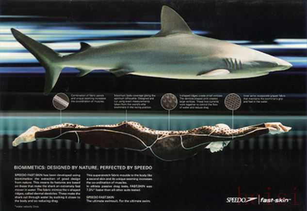 在隨后的奧運會中,這種現(xiàn)代泳衣被大規(guī)模使用,大家發(fā)現(xiàn)現(xiàn)代泳衣可以提高運動員的游泳成績,并且當時的材料技術(shù)也突飛猛進,出現(xiàn)了氨綸等合成纖維,使得改造泳衣成為了可能,人們不斷地改造泳衣,隨著仿生概念的在各行各業(yè)的應(yīng)用,鯊魚皮泳衣誕生了。