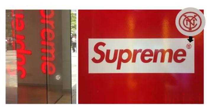 或許你由此聯(lián)想到了另一則曾引發(fā)潮流行業(yè)關(guān)注的事件——自導(dǎo)自演的Supreme聯(lián)名事件。搜索新聞圖片會(huì)發(fā)現(xiàn),當(dāng)時(shí)出現(xiàn)的那個(gè)Supreme品牌,也有NYC的角標(biāo)。