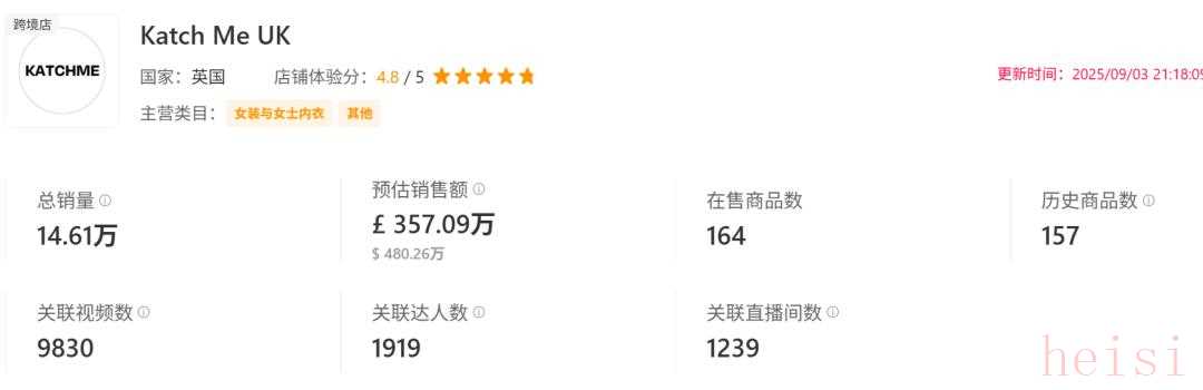 數(shù)據(jù)顯示,Katch Me英國小店預(yù)估總銷售額為357.09萬英鎊(約合3432.27萬元)。