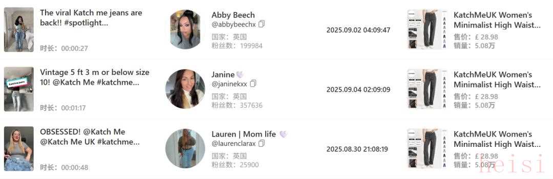 產(chǎn)品力之外,高客單價(jià)的另一關(guān)鍵托舉,便是TikTok的帶貨達(dá)人們。數(shù)據(jù)顯示,僅在英區(qū),近30天, Katch Me品牌共聯(lián)動(dòng)了1190位達(dá)人,發(fā)布了3924條帶貨視頻,發(fā)起了511場帶貨直播。幾乎全天候的社媒刷屏,讓Katch Me的品牌形象愈發(fā)深入人心。