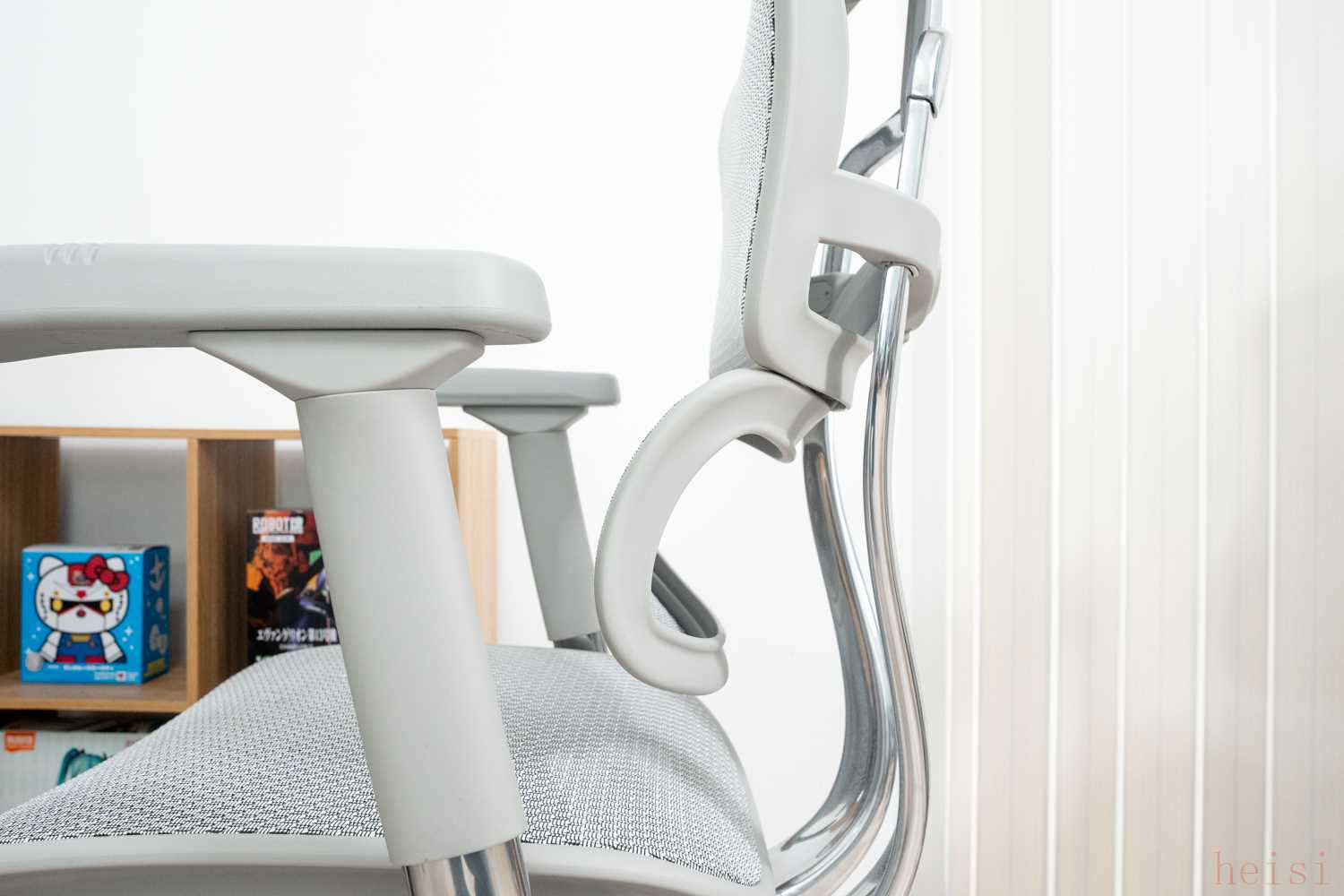 扶手調(diào)節(jié)時(shí)各個(gè)檔位之間的段落非常清晰準(zhǔn)確,調(diào)節(jié)起來(lái)也非常便利,無(wú)論是正坐、打字還是休息時(shí)都能讓手肘處在一個(gè)非常舒服的位置。