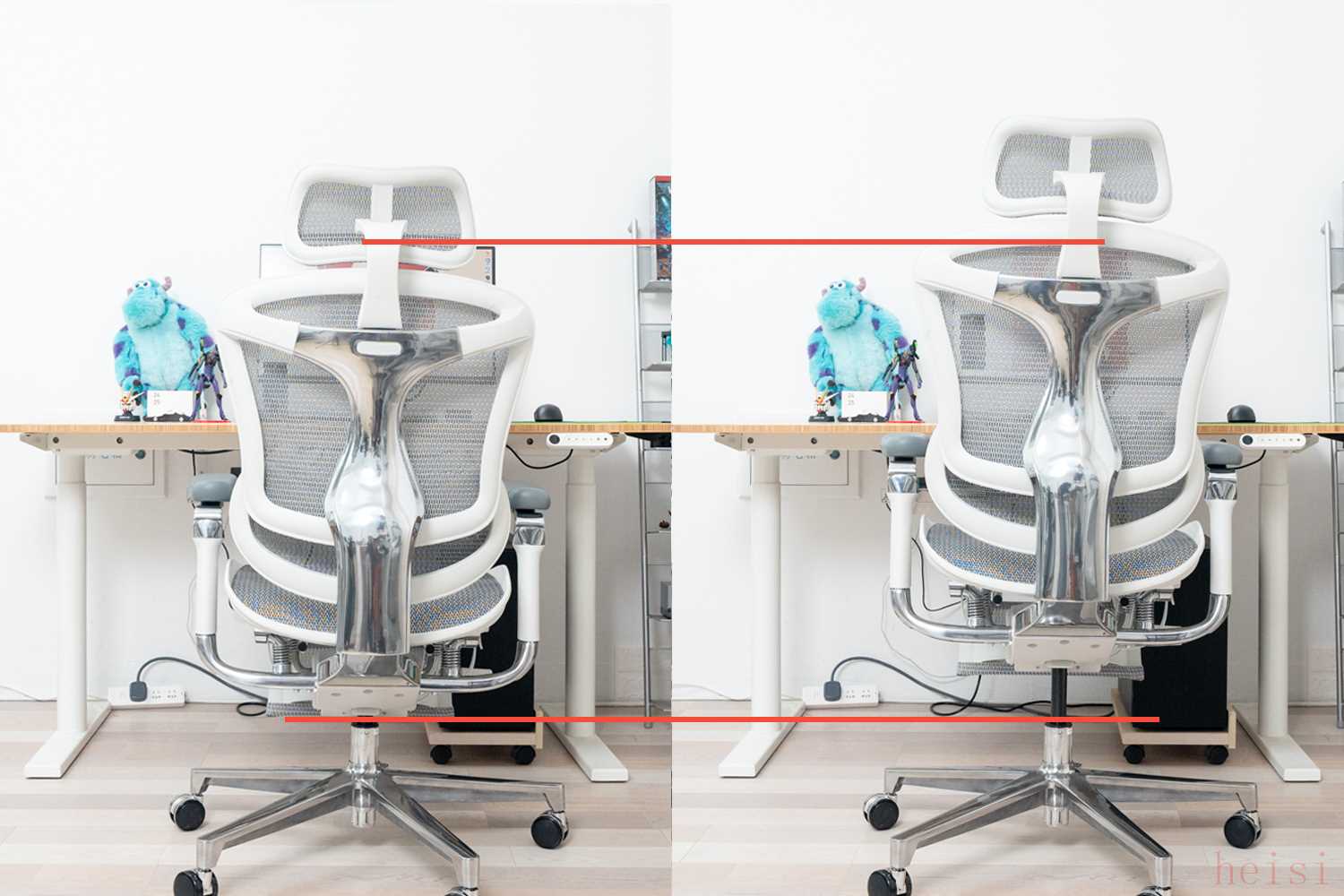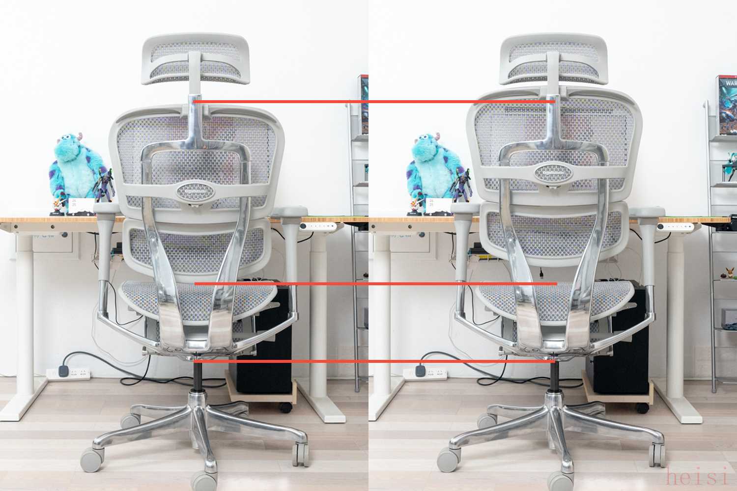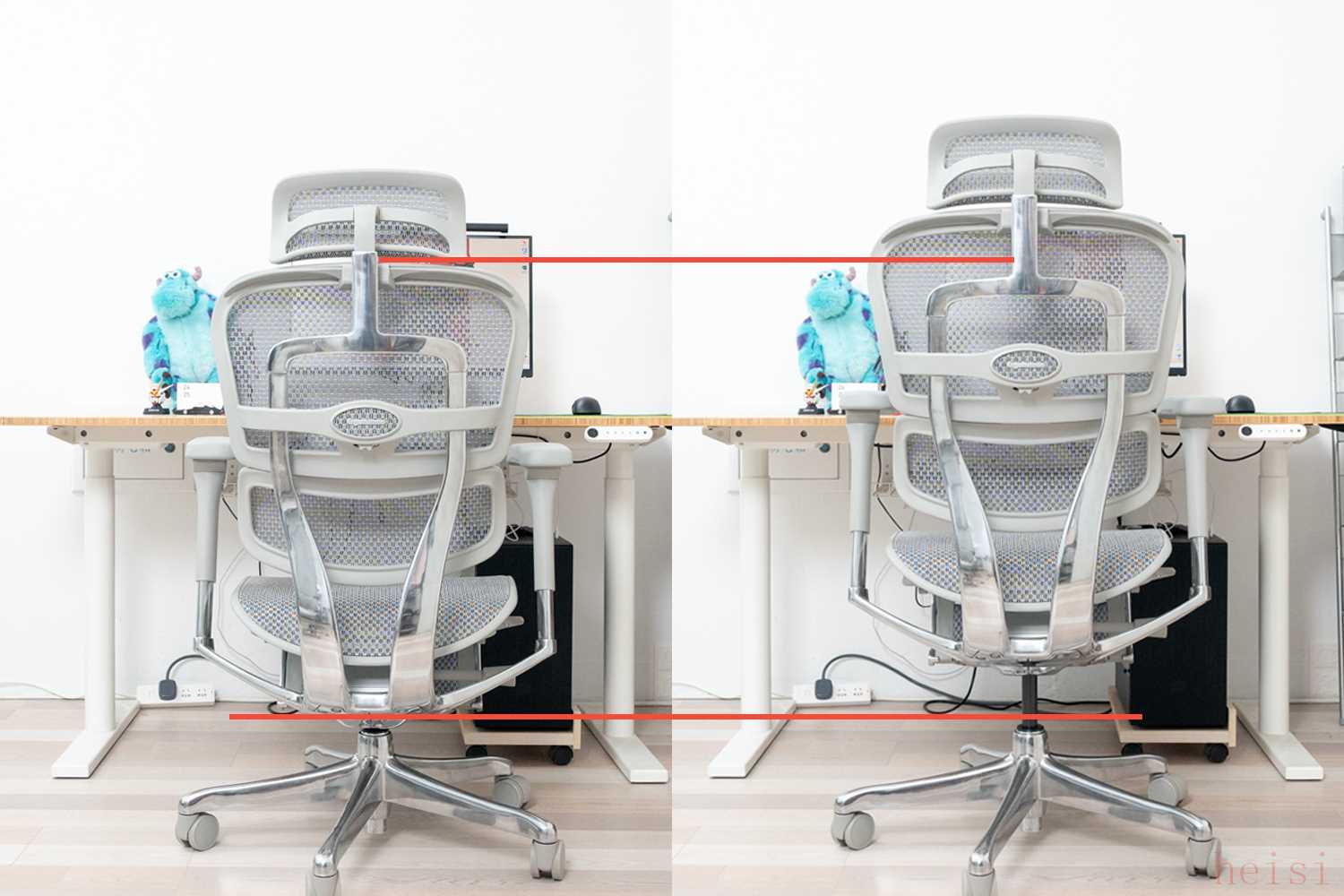 保友 金豪E2的椅背支持上下6.5cm的高度調(diào)整,調(diào)節(jié)范圍相當(dāng)可觀。我的桌高76.5cm,大家可以做一個(gè)參考。