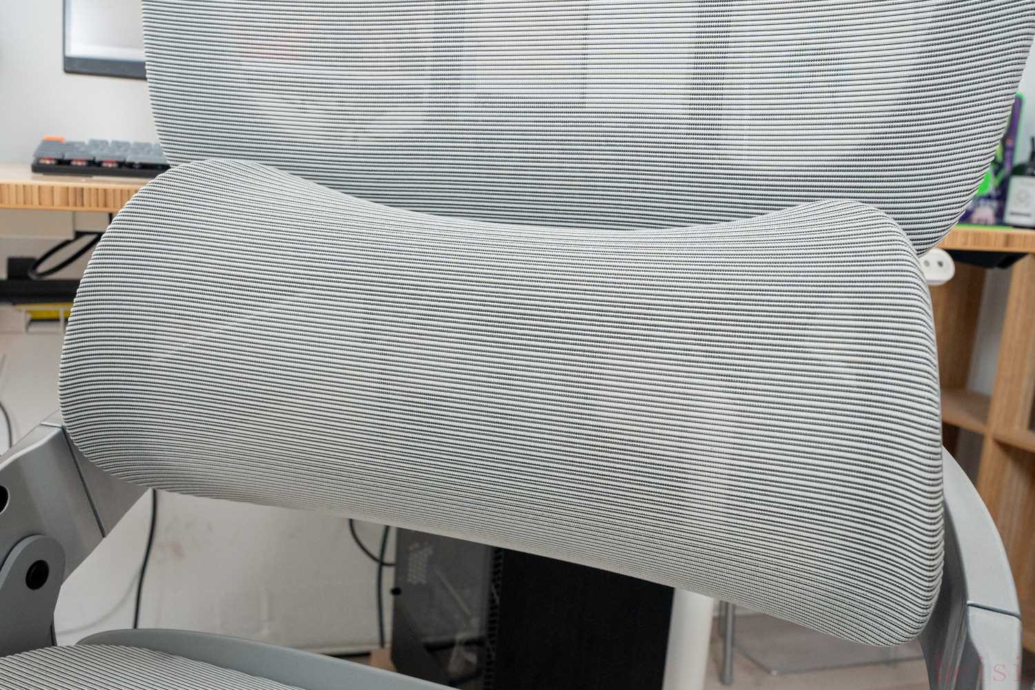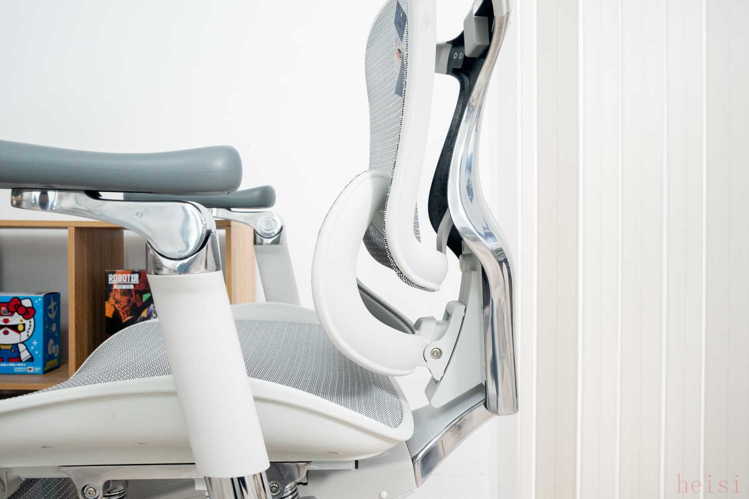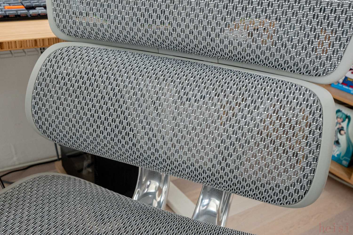 永藝Flow550的頭枕調(diào)節(jié)范圍是三款工學(xué)椅中最大的,對(duì)于頸椎的貼合不錯(cuò)。