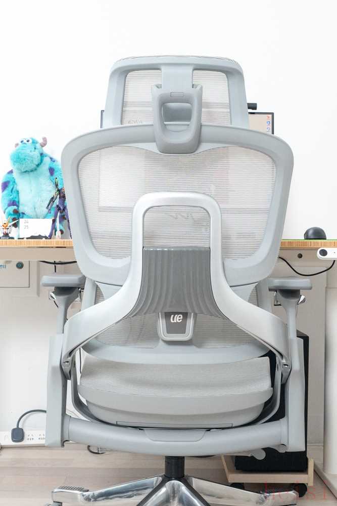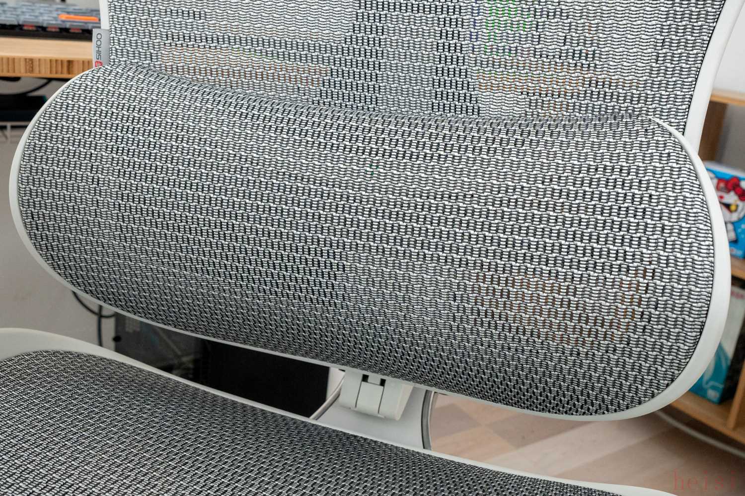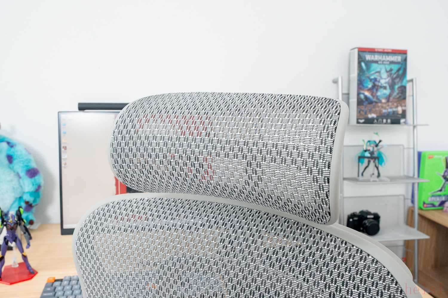 永藝Flow550的頭枕調(diào)節(jié)范圍是三款工學(xué)椅中最大的,對(duì)于頸椎的貼合不錯(cuò)。