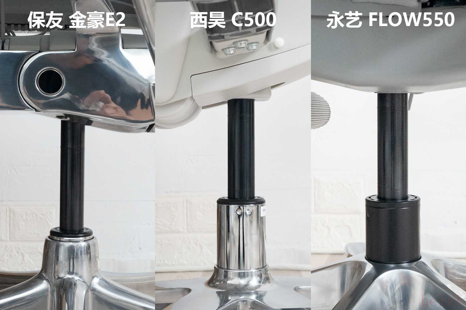 三款人體工學(xué)椅都采用進(jìn)口四級(jí)氣棒。保友 金豪E2采用韓國(guó)KGS四級(jí)氣棒,通過(guò)BIFMA認(rèn)證;西昊C500的氣棒通過(guò)了SGS和BIFMA認(rèn)證;永藝 FLOW550的氣棒則是通過(guò)了BIFMA和TUV認(rèn)證。