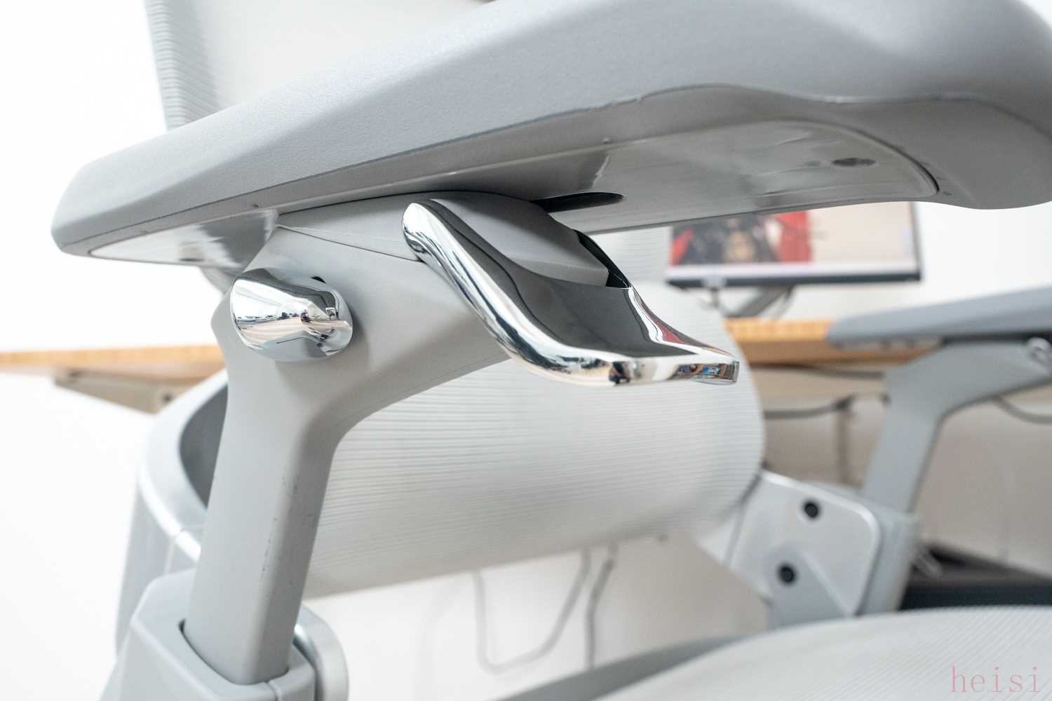 但是這個(gè)頭枕上下活動(dòng)的調(diào)節(jié)關(guān)節(jié)明顯是有些過(guò)緊,別說(shuō)坐在椅子上調(diào)整,就是站在椅子背后雙手調(diào)整都有些吃力。