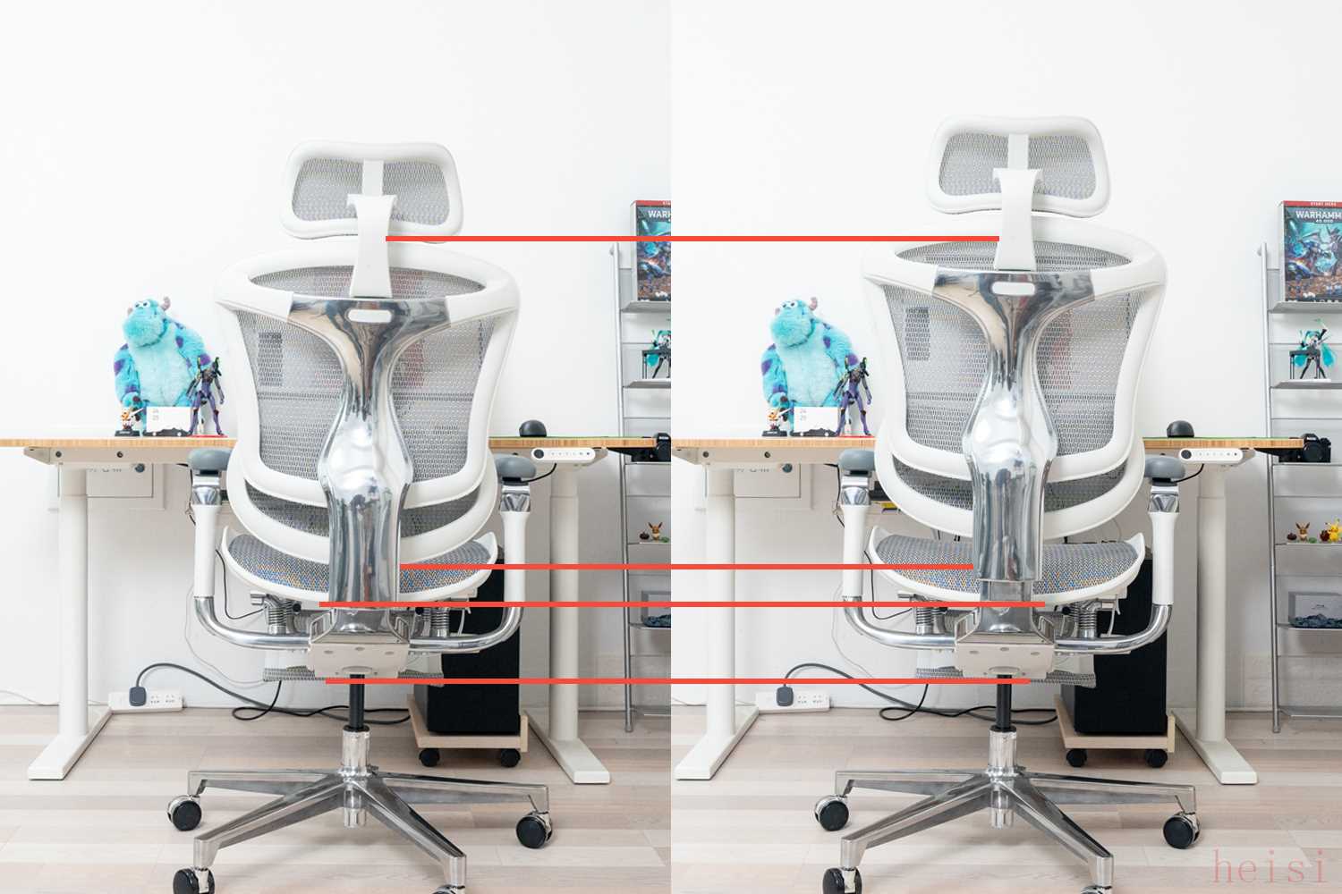 無(wú)論是正坐還是后仰,支撐力度都保持的很好,在后仰的整個(gè)行程中腰靠都能夠緊貼腰部,給予腰部實(shí)時(shí)動(dòng)態(tài)支撐。