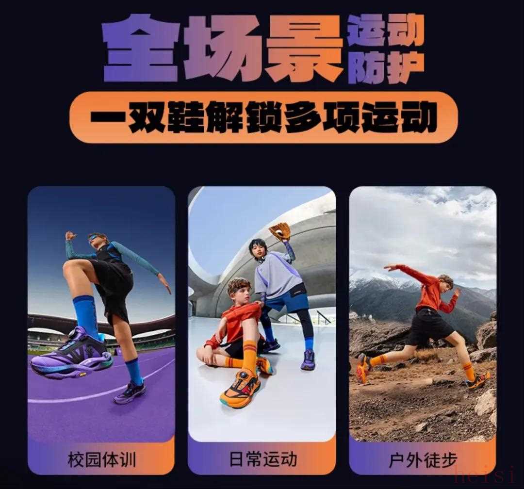 而在用途上,這雙鞋更是堪稱一雙全場景運動防護跑鞋。在泰蘭尼斯的宣傳中,孩子穿上它,不論是校園里的籃球、羽毛球、田徑比賽,還是戶外的長跑、徒步、騎行,均能從容應(yīng)對,被譽為“童鞋界的SUV”。由于覆蓋項目多,橫跨年齡大,可以說,這雙鞋已經(jīng)是泰蘭尼斯與各大運動品牌之間的直接交鋒。