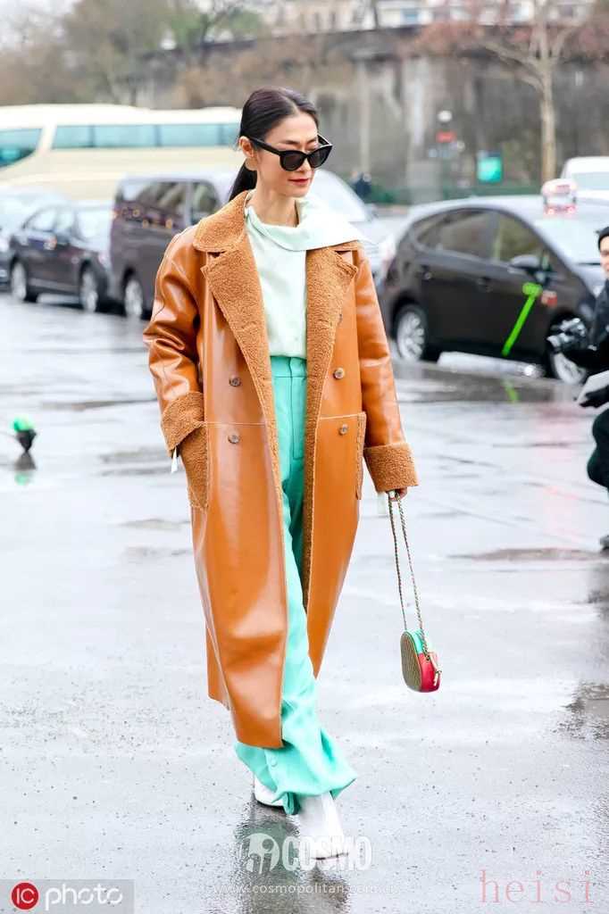 比起短款皮毛一體外套,長(zhǎng)款的更加保暖,加上高飽和度,簡(jiǎn)直是行走的風(fēng)景線。像Aimee Song選擇的一色湖水藍(lán)的皮毛一體大衣,時(shí)髦亮眼,瞬間打破秋冬的蕭瑟感。