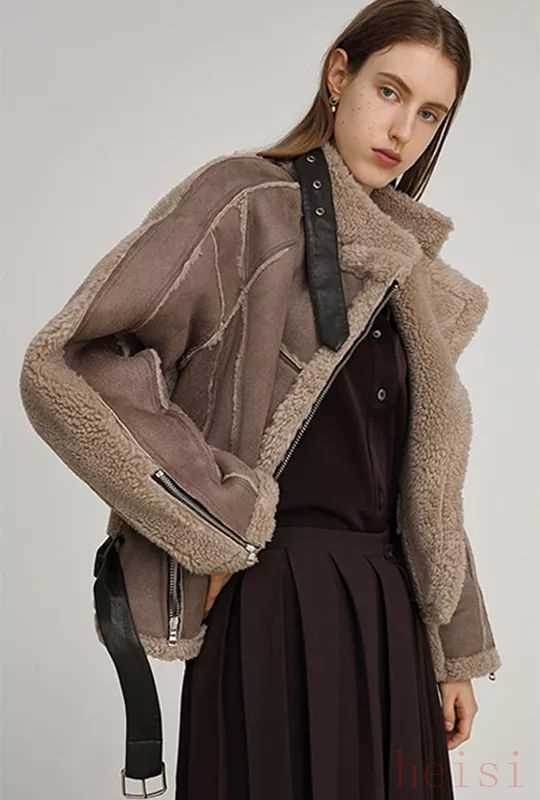 皮毛一體的外套最經(jīng)典的莫過(guò)于溫柔氣質(zhì)的焦糖色麂皮和白色羊羔毛的拼接款了。短款突出腰線,更顯腿長(zhǎng)。焦糖色和白色的配色看起來(lái)就格外溫暖,愈發(fā)顯得高級(jí)有格調(diào)。