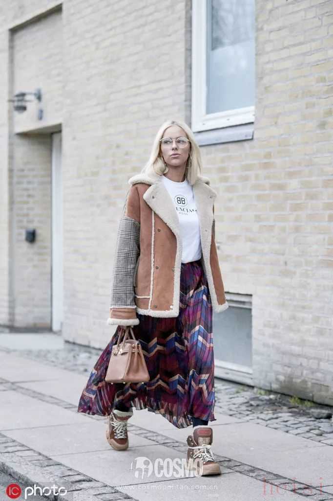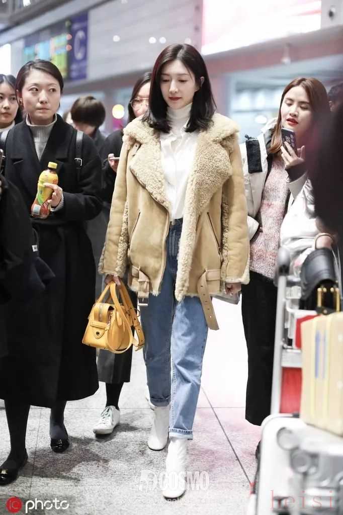 在一票的街拍中,經(jīng)典的棕色皮毛一體外套出鏡率很高,百搭又溫暖。江疏影和海貍都用它搭配了一身look。