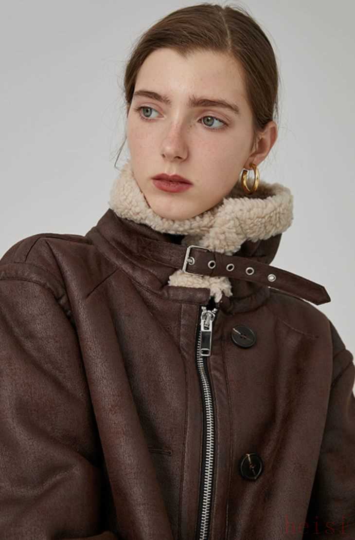 相比長(zhǎng)款的風(fēng)衣外套,皮毛一體外套會(huì)顯得更加帥氣利落。翻領(lǐng)領(lǐng)型更為帥氣,輕輕松松穿出街頭復(fù)古的帥氣。