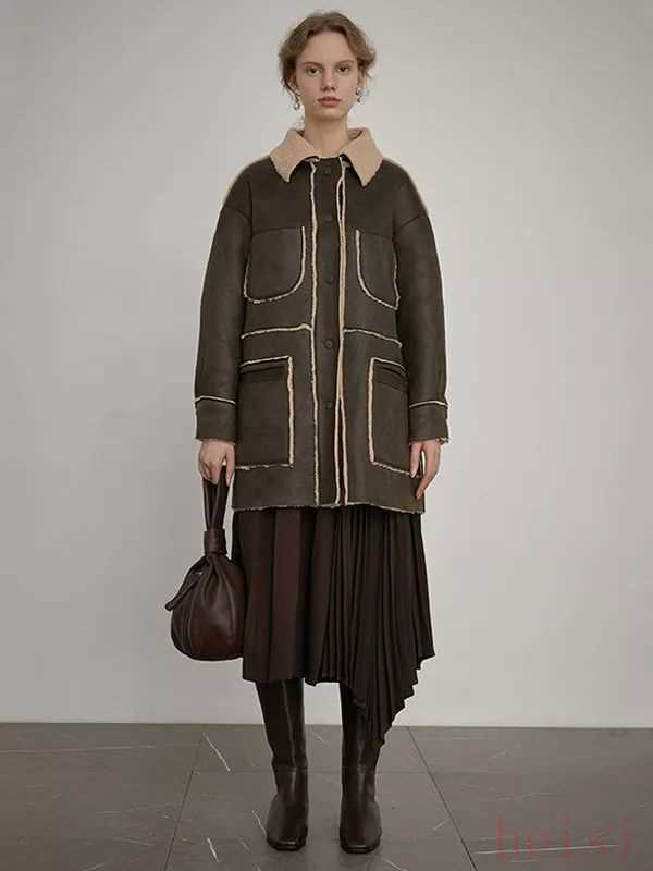 這款皮毛一體外套采用棕黑拼色設(shè)計(jì),不僅保留了棕色外套的柔和溫暖還融入了酷感十足的黑色皮質(zhì),是隨性自然的街頭風(fēng)。