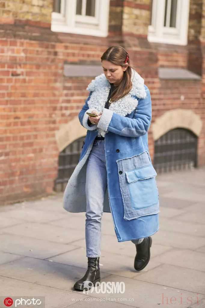 順色系長(zhǎng)款皮毛一體外套,除了顏色上可以千變?nèi)f化,在質(zhì)感上也能作文章。穿厭了經(jīng)典的面料搭配可以試試牛仔質(zhì)地的,牛仔質(zhì)地的看起來(lái)比較特別,也不易撞衫。