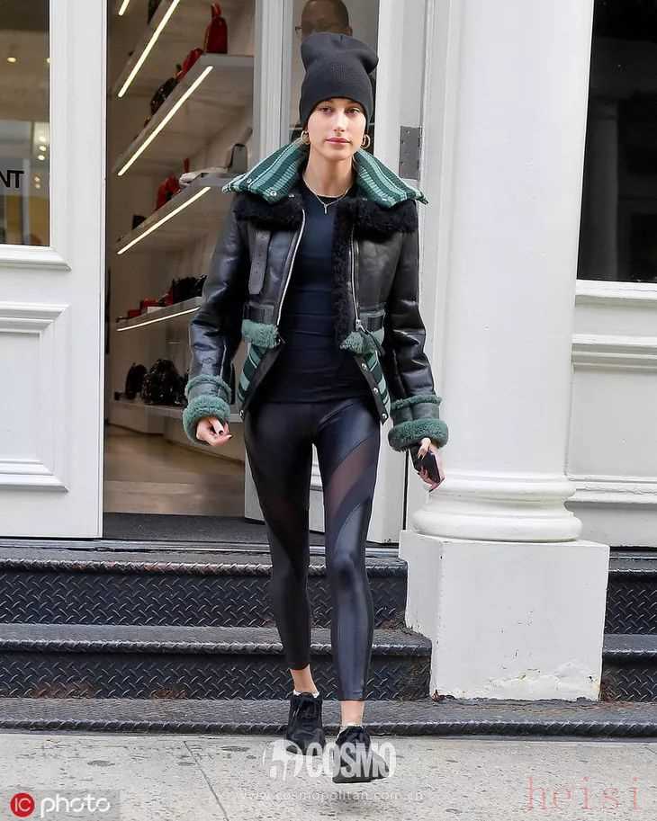 海貍也上身了暗綠色做裝飾的皮毛一體外套,配運(yùn)動(dòng)健身褲都完全沒(méi)在怕的。