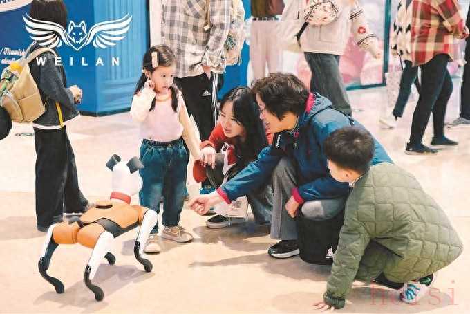 清明假期,阿爾法機(jī)器狗首次“跳躍”到線下。蔚藍(lán)科技在景楓購物中心設(shè)置了快閃店,與新上市的熱門新能源汽車“同臺競技”,機(jī)器狗的吸引力絲毫不遜色。新的快閃店正在籌備中,這次,蔚藍(lán)科技選擇的是南京頂流商場德基廣場。