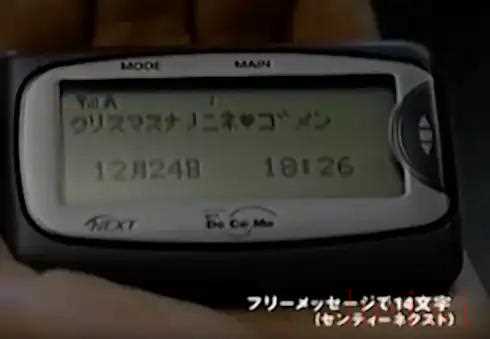 Docomo Pocket Bell尋呼機,文字內(nèi)帶有心形圖標(biāo)。