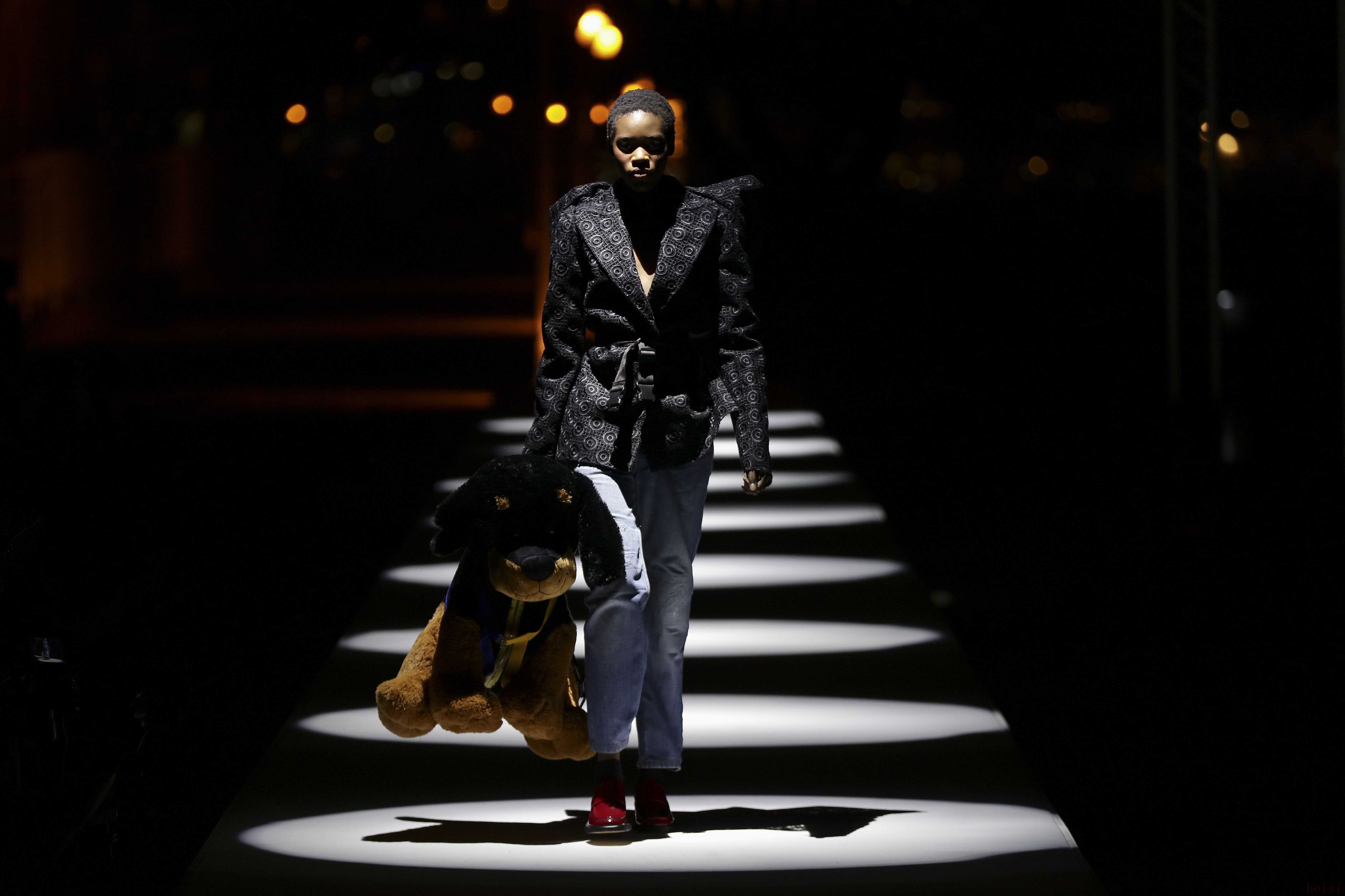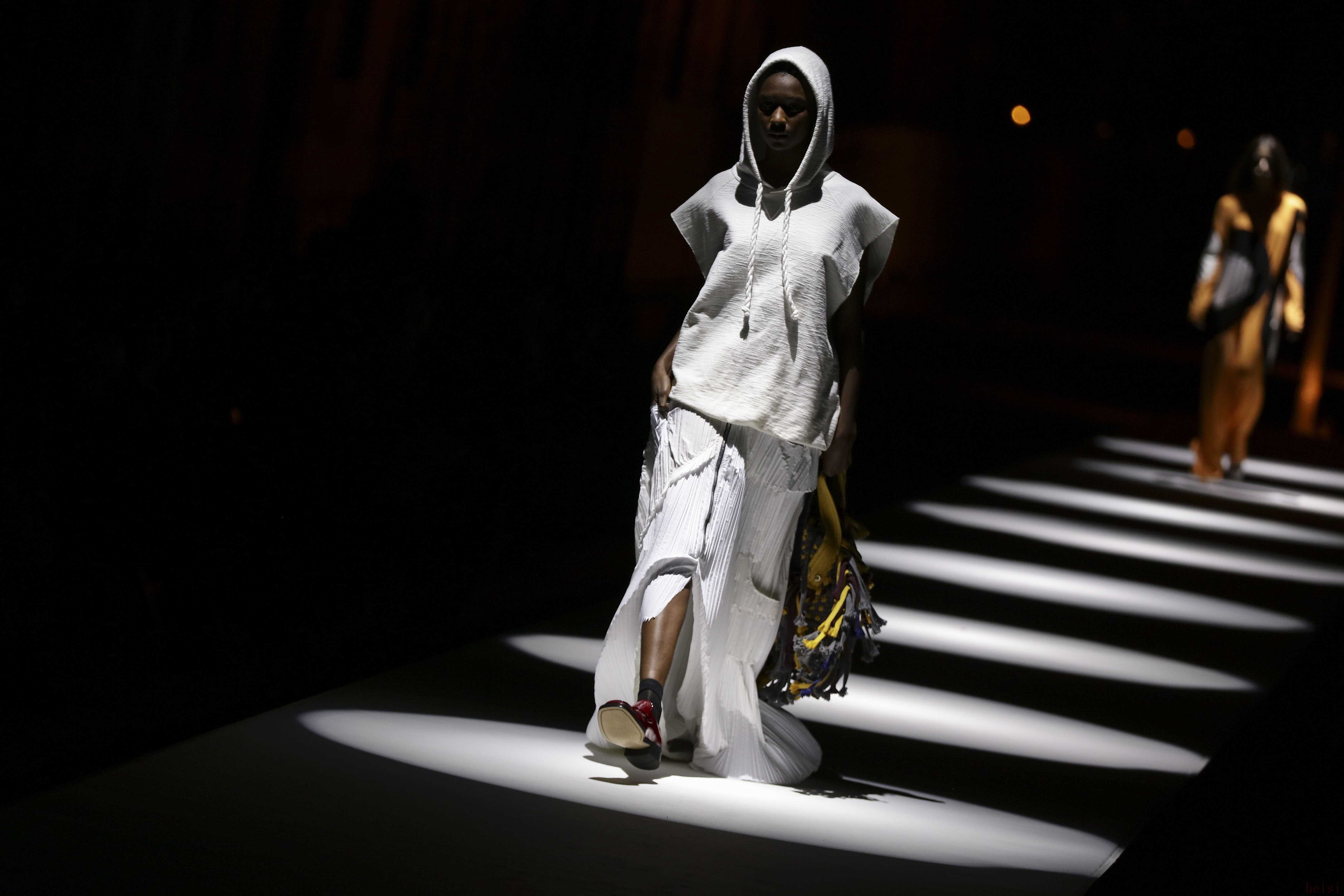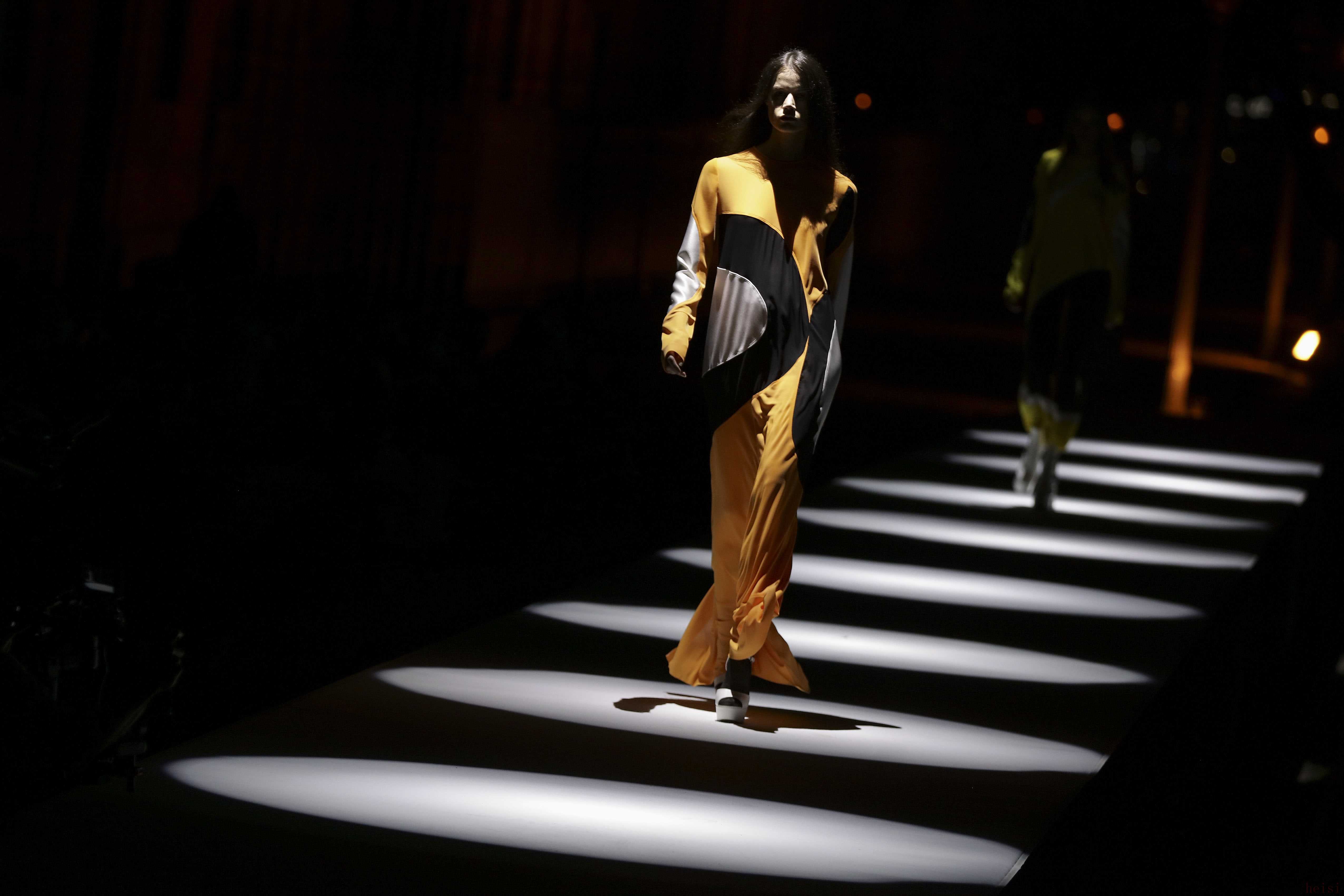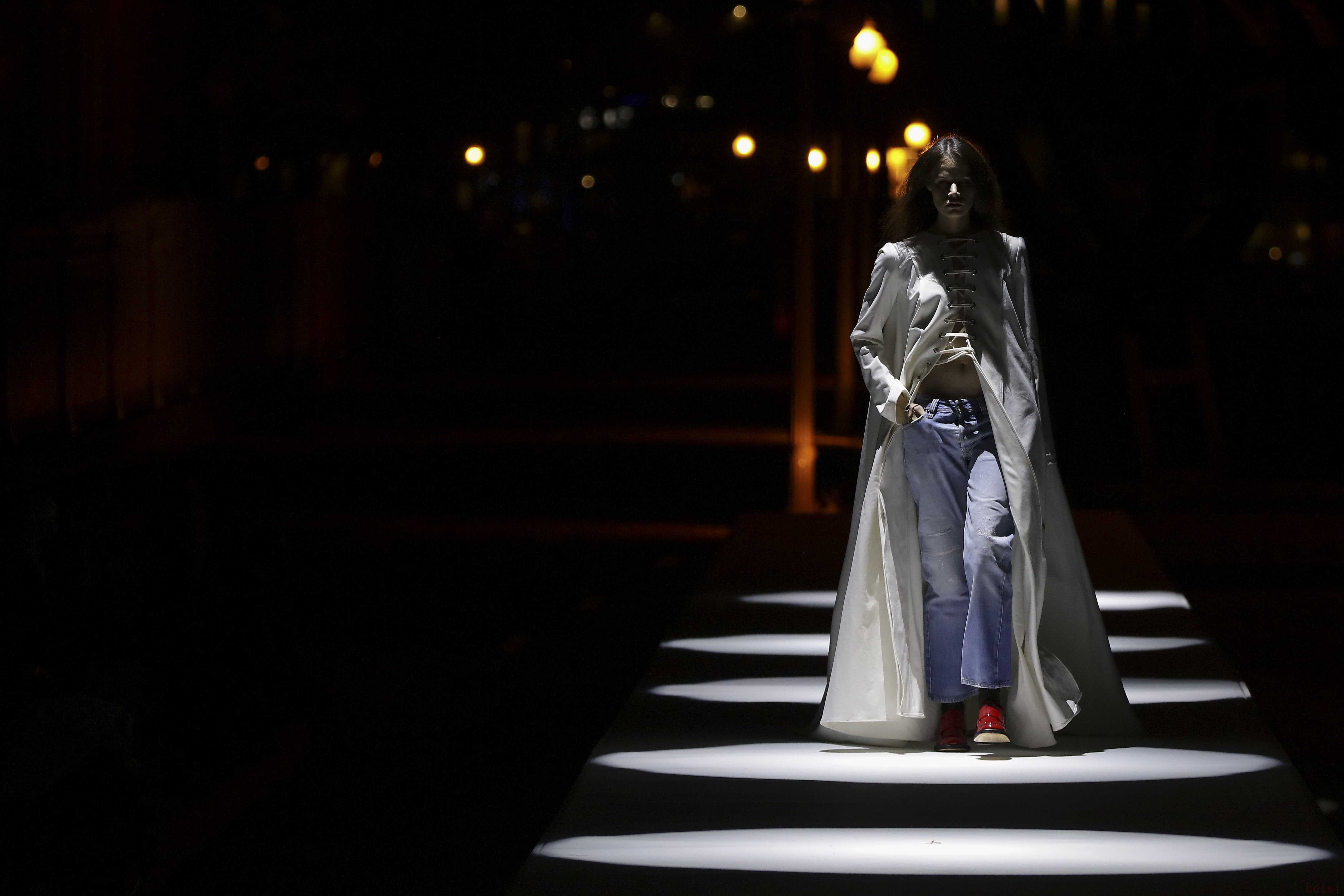 新華社照片,外代,2020年10月18日(外代二線)(12)葡萄牙時裝秀——Alves/Goncalves品牌時裝秀10月17日,在波爾圖舉行的葡萄牙時裝秀上,模特展示Alves/Goncalves品牌的2021春夏新款服裝。新華社/歐新