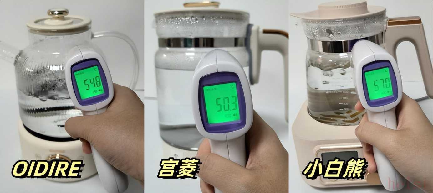 在測試中,宮菱電熱水壺的溫控表現(xiàn)非常出色,其溫控精度達到了驚人的0.5度誤差范圍內(nèi)。在不同溫度設(shè)置的多次試驗中,它都能夠精準地控制水溫,非常適合泡茶、溫奶等多種用途,能夠保持很好的口感。其主要是宮菱采用了NTC溫控陣列和WOS智能控溫算法等先進技術(shù),有效地避免了千滾水、半生水和有害物質(zhì)的形成,其控溫性能在同類產(chǎn)品中堪稱卓越。在我體驗過的電熱水壺中,宮菱無疑是很好的選擇。德國OIDIRE、宮菱、小白熊電熱水壺值得買嗎?怎么選?小白熊產(chǎn)品在經(jīng)過實際測評后發(fā)現(xiàn),其實際工作溫度與預(yù)設(shè)溫度之間差距大約為5.5度。這樣的溫差對于特定人群,尤其是腸胃較為敏感的寶寶來說,可能會造成一定的不適,影響健康。實際測德國OIDIRE電熱水壺時,我發(fā)現(xiàn)它的實際工作溫度和預(yù)設(shè)溫度差得有點多,大概有7.6度。這么大的溫差容易讓溫控出問題,要么水會反復(fù)燒開變成千滾水,要么就燒不透成了半生水。要知道,這類水可能含有亞硝酸鹽之類的有害物質(zhì),用著不太放心。3、隔熱性電熱水壺工作時溫度不低,所以壺身外部材質(zhì)的隔熱效果對安全影響挺大。要是材質(zhì)不好,手柄很容易變燙,咱們拿的時候就可能被燙傷。判斷隔熱效果好不好,其實看手柄溫度就行,溫度越低說明隔熱做得越好。不過這也和水壺的散熱設(shè)計、手柄用的材料以及厚度都有關(guān)系。我測試的時候,先燒開1000毫升水,之后再測手柄的溫度,通過對比不同水壺的手柄溫度,就能清楚知道它們的隔熱性能怎么樣了。
