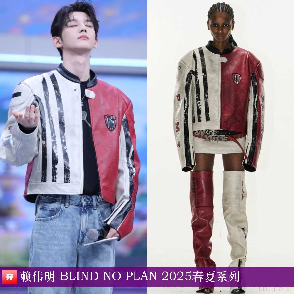 賴偉明,《一見你就笑》。做舊撞色皮夾克:BLIND NO PLAN 2025春夏系列。多位男女明星都穿過同款皮夾克,很適合舞臺。