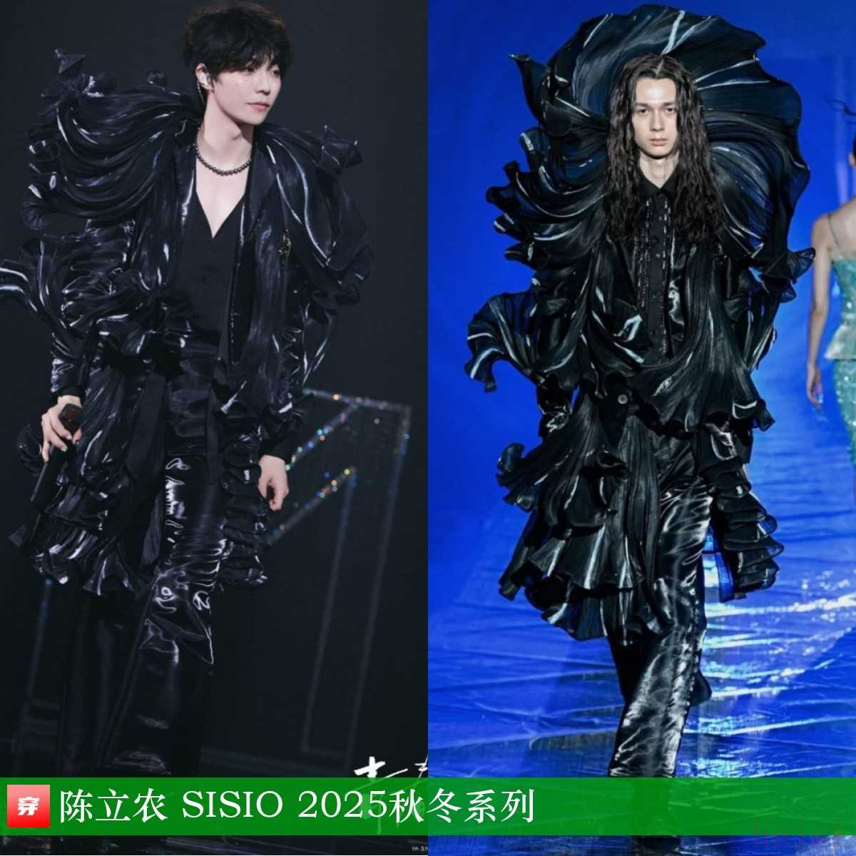 陳立農(nóng),「青春為名」個人巡回演唱會深圳站。黑色立體波浪大衣:SISIO 2025秋冬系列。這身衣服有點深海巨獸的感覺,哈~
