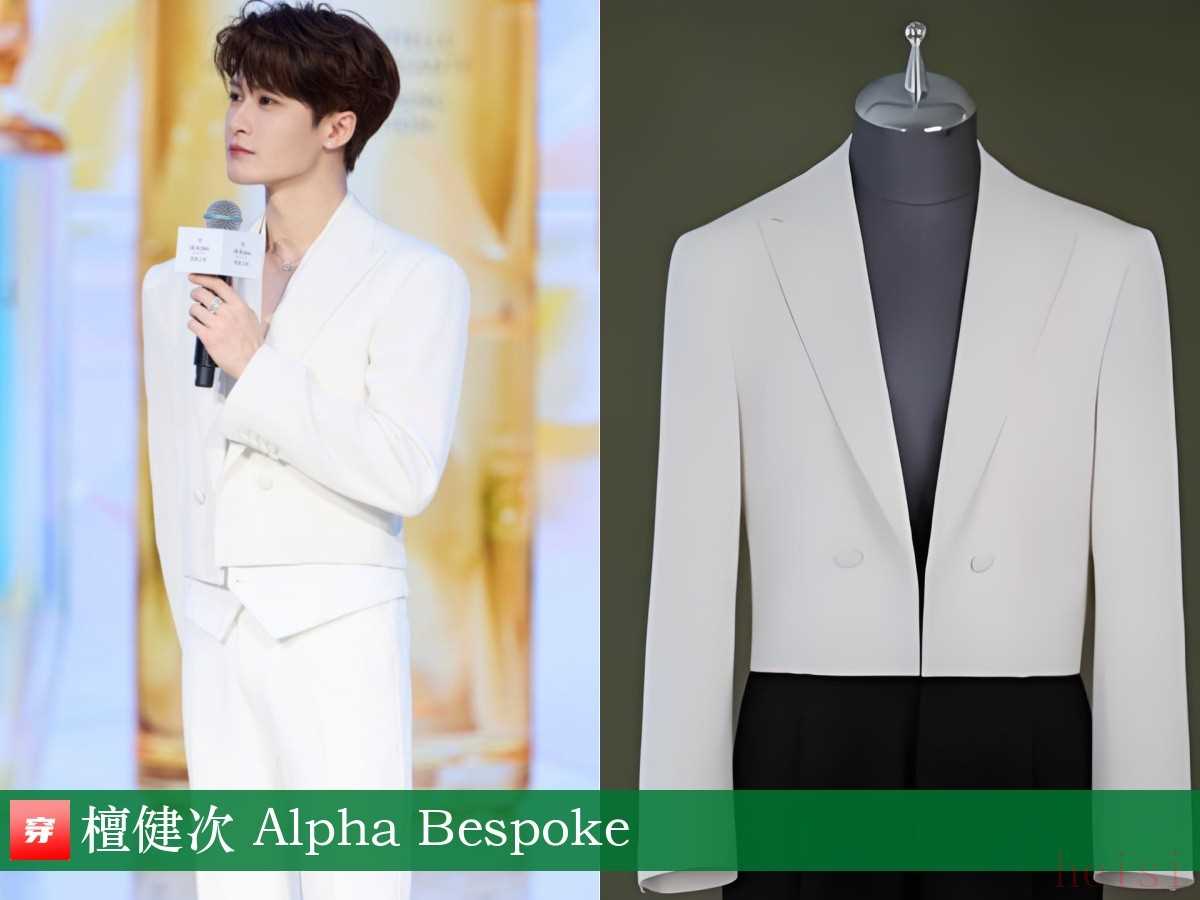 檀健次,品牌發(fā)布會。白色短款西裝:Alpha Bespoke??赐晟厦娴娜?,立馬又來一套全白LOOK。