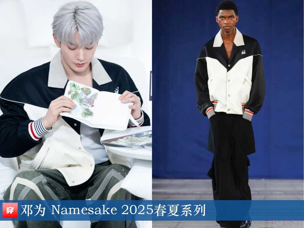 鄧為,品牌直播活動。黑白撞色拼接夾克:Namesake 2025春夏系列。奶奶灰頭發(fā)很搶眼~