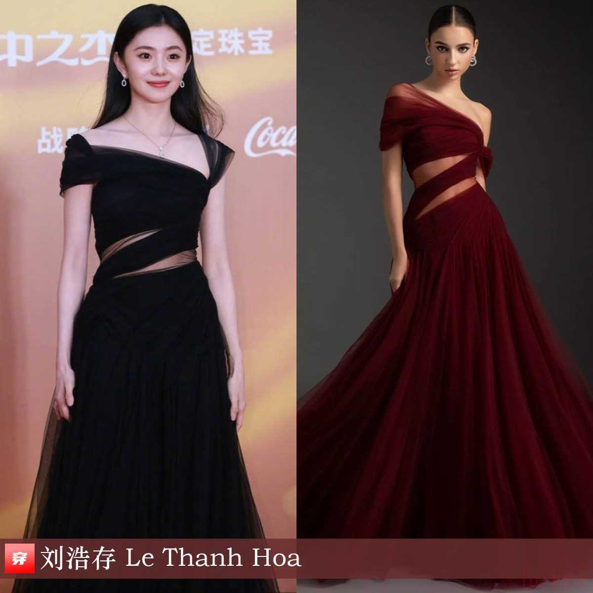 劉浩存,第二十屆長春電影節(jié)閉幕式。不對稱設(shè)計薄紗連衣裙:Le Thanh Hoa。簡單的黑裙,可!