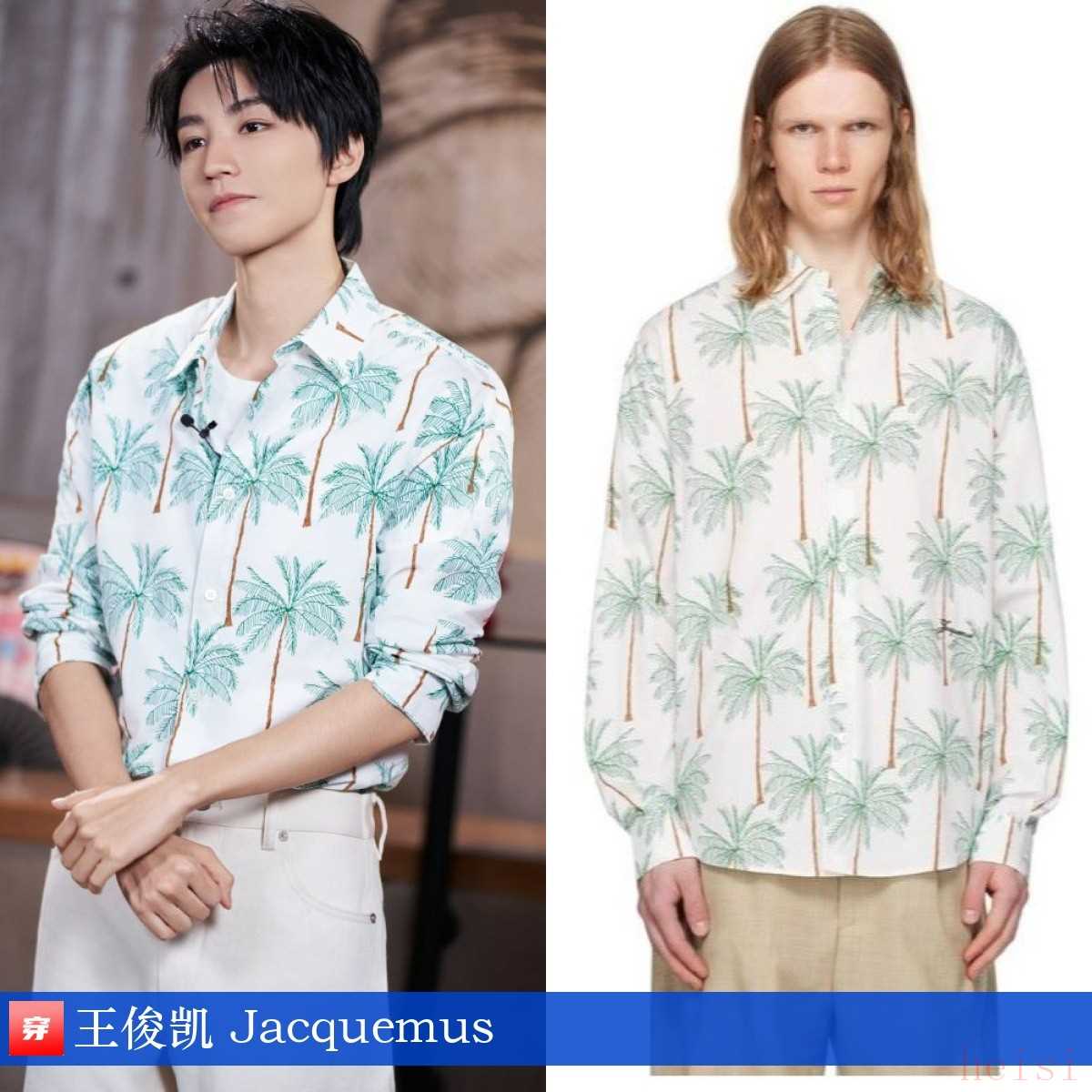 王俊凱,品牌直播活動。椰樹印花長袖襯衣:Jacquemus。還內(nèi)搭了老頭背心?