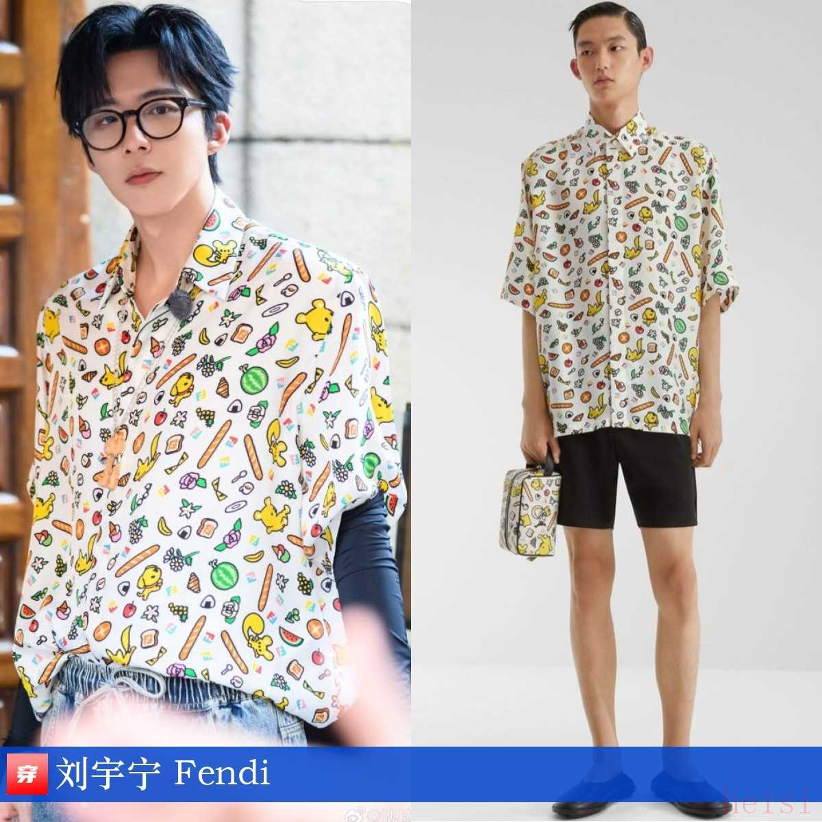 劉宇寧,《地球超新鮮》。白色卡通印花短袖襯衣:Fendi。萌!
