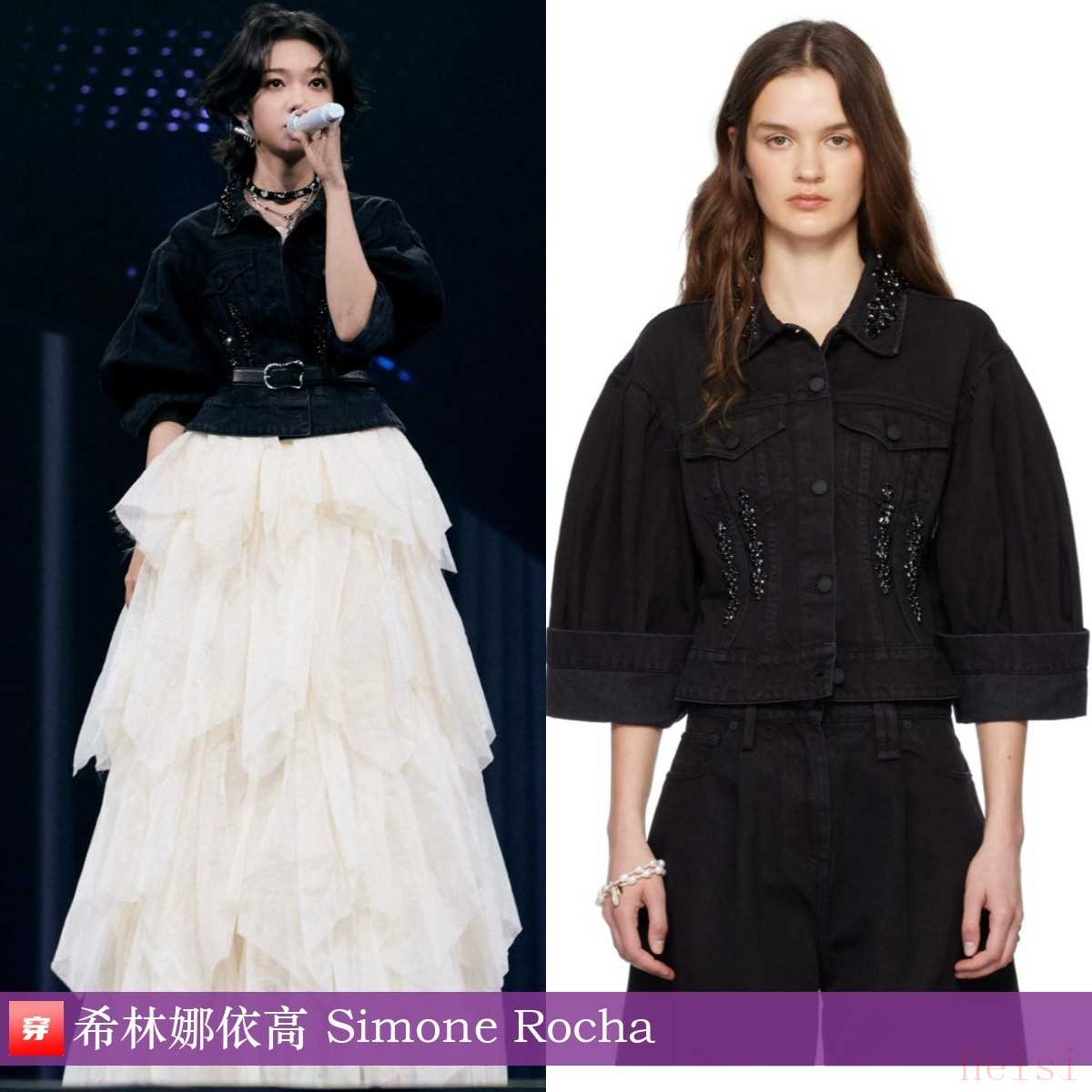 希林娜依高,2025超級夏晚。黑色鉆飾牛仔夾克:Simone Rocha。這樣一搭,腿長直奔1米8去了。