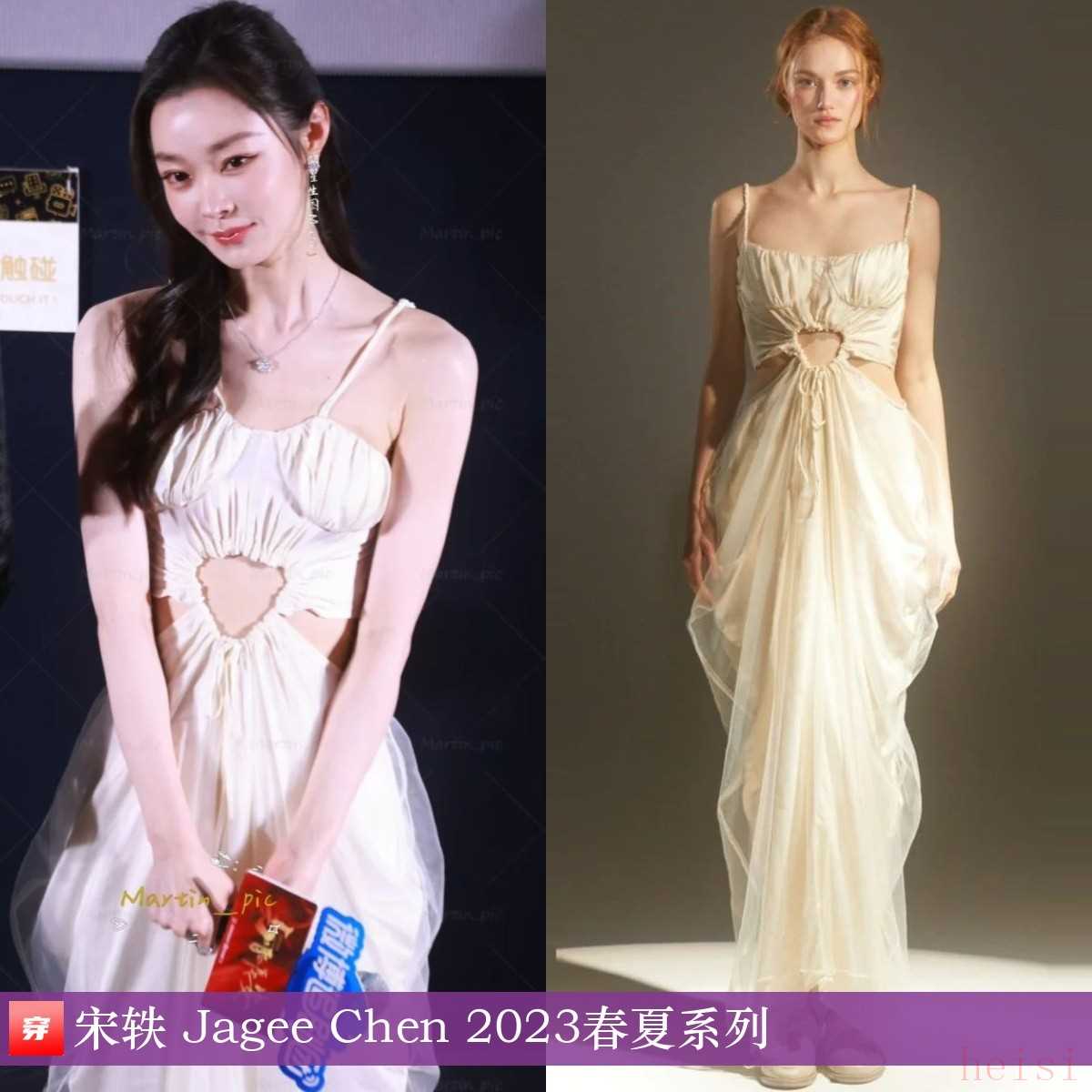 宋軼,《與晉長安》追劇團活動。白色薄紗挖空吊帶裙:Jagee Chen 2023春夏系列。