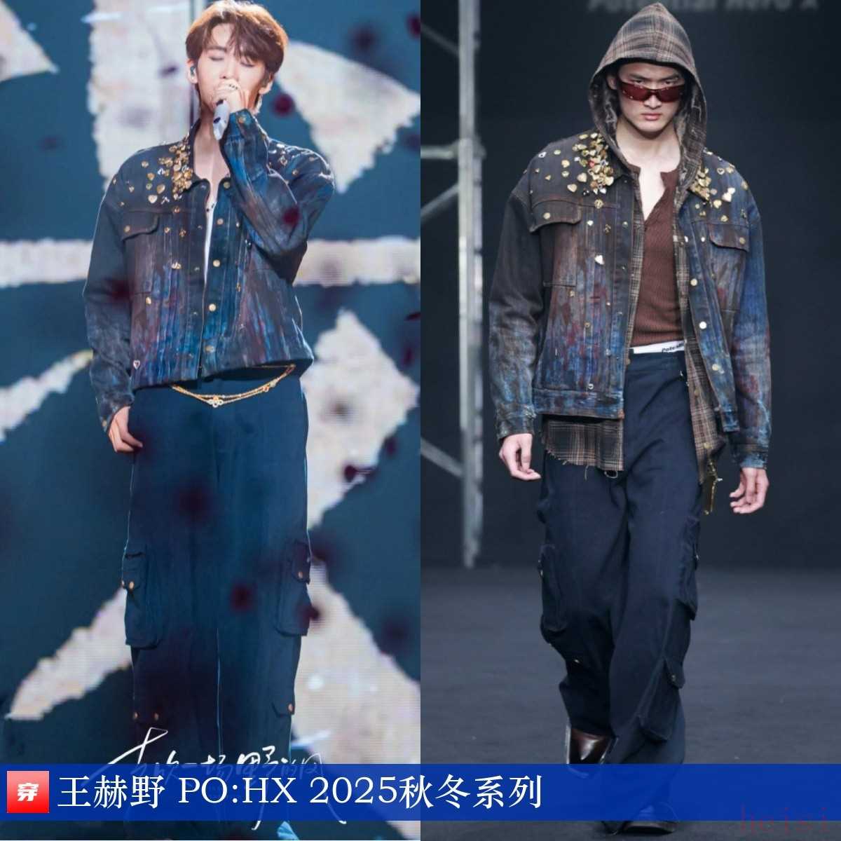 王赫野,「去吹一場野的風(fēng)」2.0巡回演唱會南京站。金屬裝飾臟染牛仔夾克:PO:HX 2025秋冬系列。短款的上衣帶來的好處明顯可見。