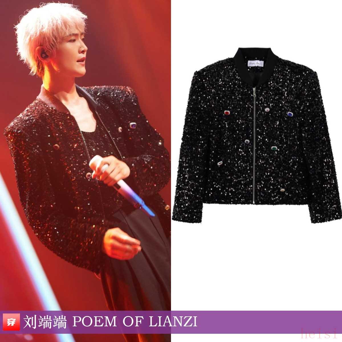 劉端端,門尼「開門」巡演沈陽站。黑色不規(guī)則手縫寶石扣夾克:POEM OF LIANZI。黃發(fā)的端端~
