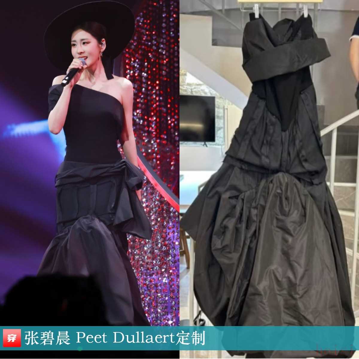張碧晨,第32屆東方風(fēng)云榜音樂盛典。黑色拼接抹胸魚尾禮服:Peet Dullaert定制。