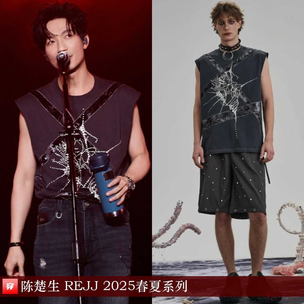 陳楚生,2025張家界峰林音樂節(jié)。裂光菱影珠飾背心:REJJ 2025春夏系列。小露一點胳膊上的肌肉,o(∩_∩)o
