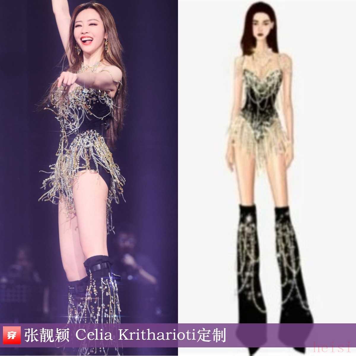 張靚穎,「追」巡回演唱會合肥站。串珠流蘇黑色連體衣:Celia Kritharioti定制。這套夠火辣喲。
