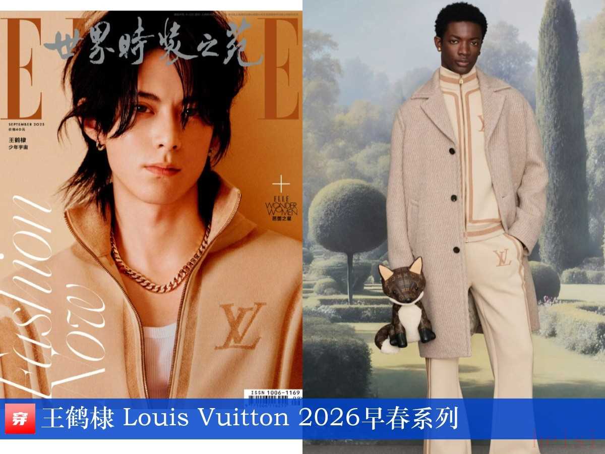 王鶴棣,《ELLE世界時裝之苑》2025年9月刊。淺杏色運動外套:Louis Vuitton 2026早春系列。最新款已上身,資源夠牛。