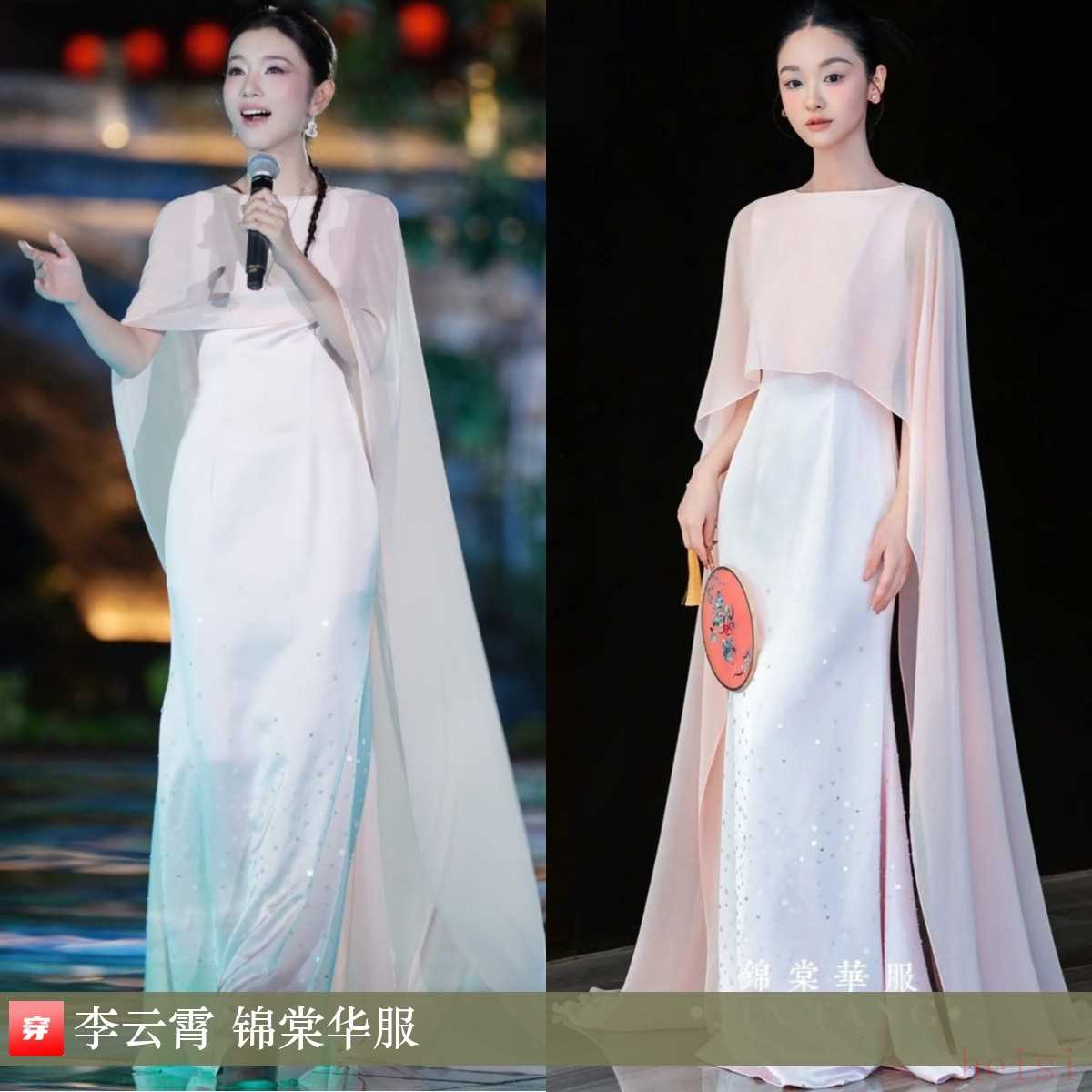 李云霄,2025央視七夕晚會。粉色披風(fēng)白色燙鉆禮服:錦棠華服。她的相貌氣質(zhì)都很契合中式禮服,完美!