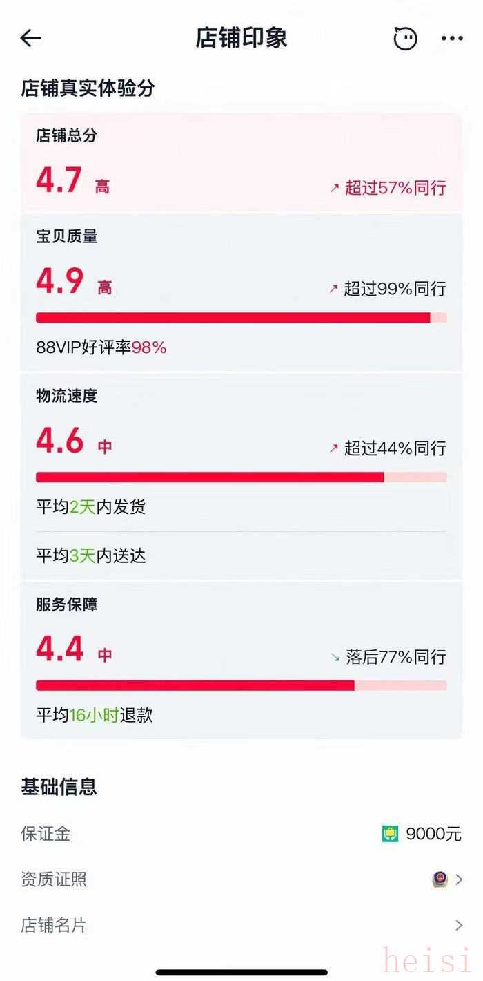 戎美淘寶店鋪的數(shù)據(jù)顯示,其“寶貝質(zhì)量”評(píng)分高達(dá)4.9分,超過(guò)99%的同行。但其“服務(wù)保障”評(píng)分僅為4.4分,落后77%的同行。