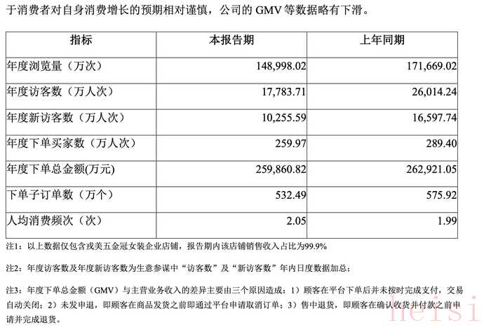 與此同時(shí),最終轉(zhuǎn)化為銷售的下單買(mǎi)家數(shù)也從289.40萬(wàn)人次降至259.97萬(wàn)人次。對(duì)于數(shù)據(jù)的下滑,戎美股份在財(cái)報(bào)中給出了解釋。公司稱,瀏覽量和訪客數(shù)的下降是由于“優(yōu)化了推廣方式,節(jié)約了推廣費(fèi)”所致,而GMV的下滑則歸因于“消費(fèi)者對(duì)自身消費(fèi)增長(zhǎng)的預(yù)期相對(duì)謹(jǐn)慎”。
