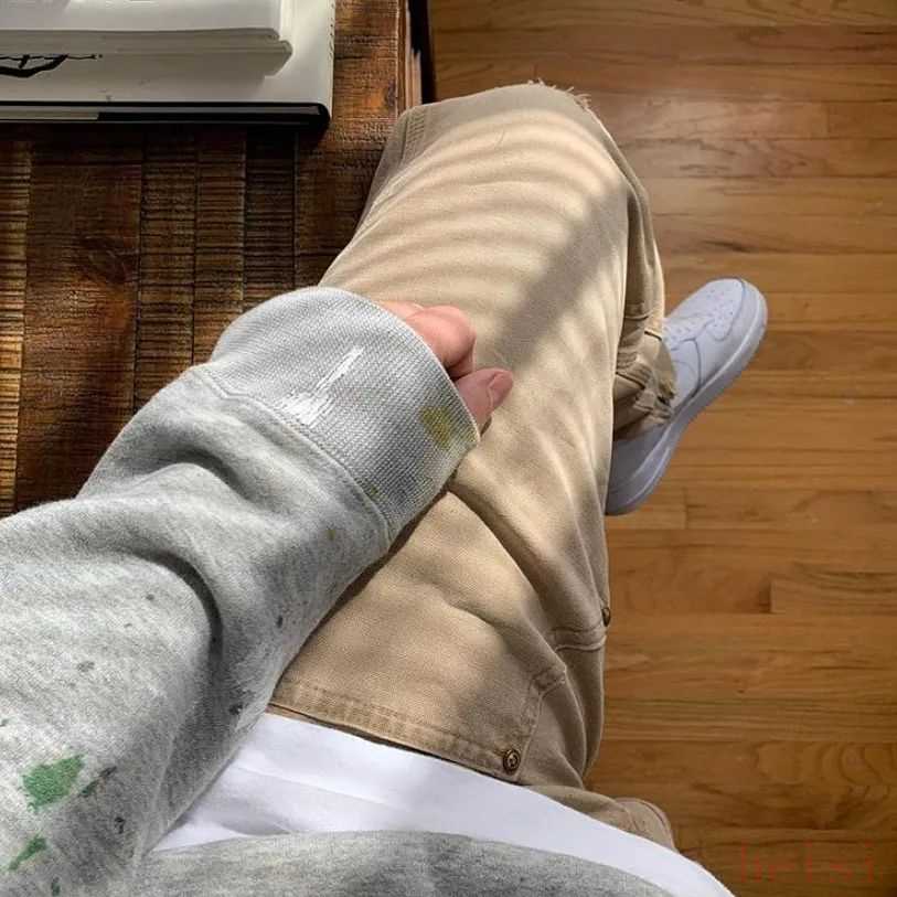 在前幾周所總結(jié)的「Vibe風」穿搭中,「標志性單品」除了簡約衛(wèi)衣、做舊球鞋,占據(jù)另外半壁江山的,往往是 Gallery Dept. 或 Vintage Carhartt 工裝褲。